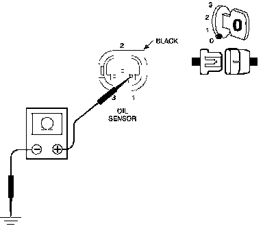 Measure the resistance between ground and the Oil Sensor Signal circuit.