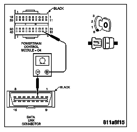 Measure the resistance of the PCM SCI Receive circuit from the PCM C4 harness connector to the DLC.