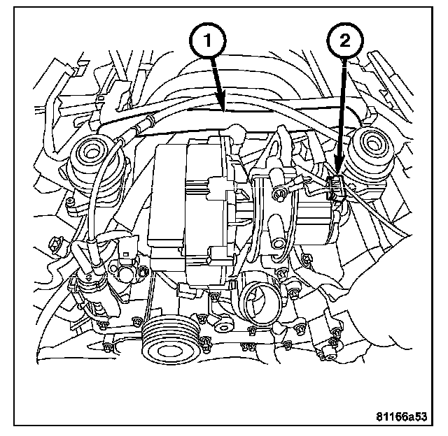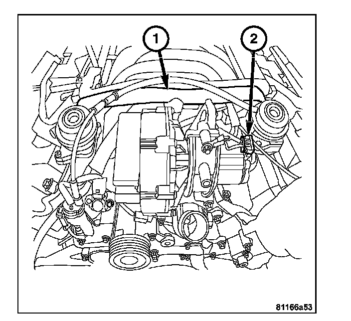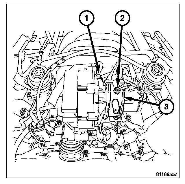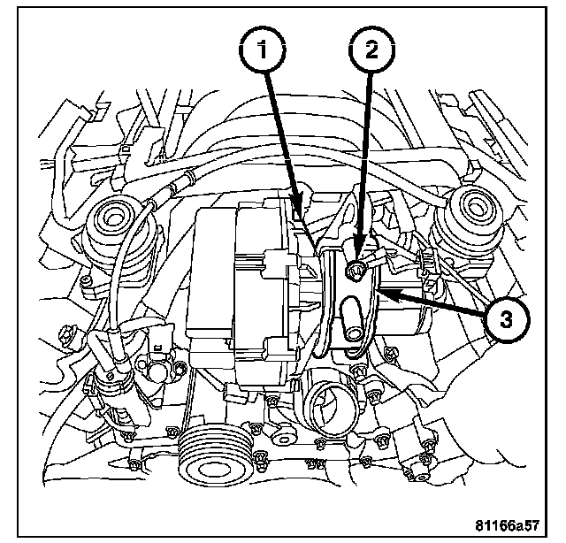 2. Install the air pump retaining bolt (2) and tighten to 20 N.m (177 in. lbs.) torque.
