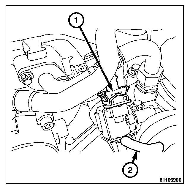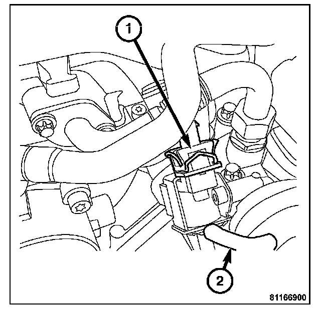 4. Disconnect the solenoid to valve vacuum line (2).