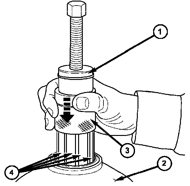 10. Slide the collar (3) on the Special Tool 9082 (1) downward over the fingers (4) of the tool.
