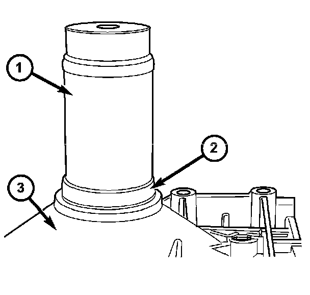 a. Using Special Tool 9287 (1), install the output shaft bearing (2) into the transmission housing (3). The closed side of the plastic cage must point towards the parking lock gear.