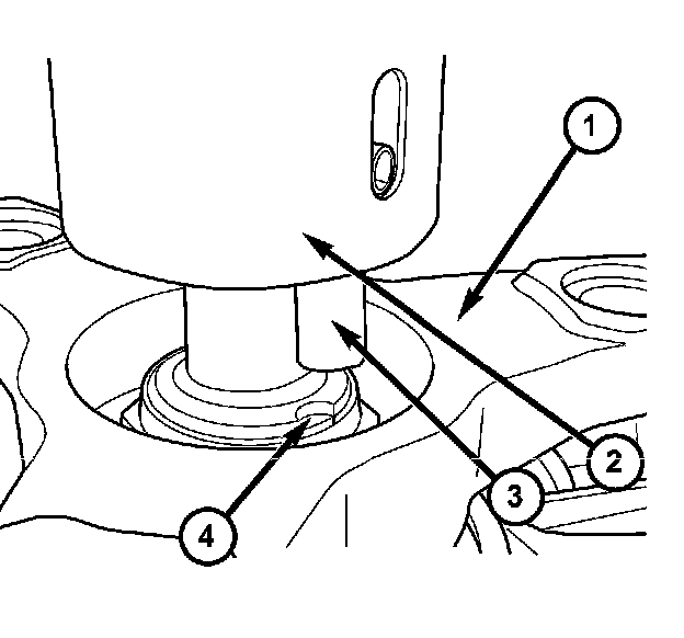 b. Rotate Special Tool 9078 (2) until the alignment pin (3) engages the output shaft notch (4).