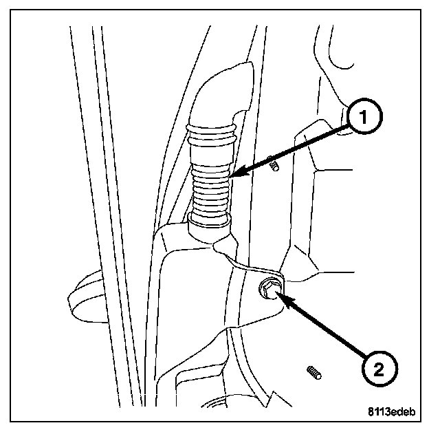 3. Remove the washer fluid filler tube (1) from the washer reservoir.