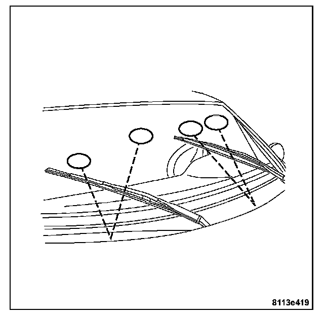 1. Using a safety pin (1), adjust each nozzle jet as required to aim the spray within the wiper sweep pattern.