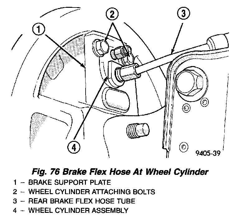 4. Disconnect the rear brake flex hose from the wheel cylinder.