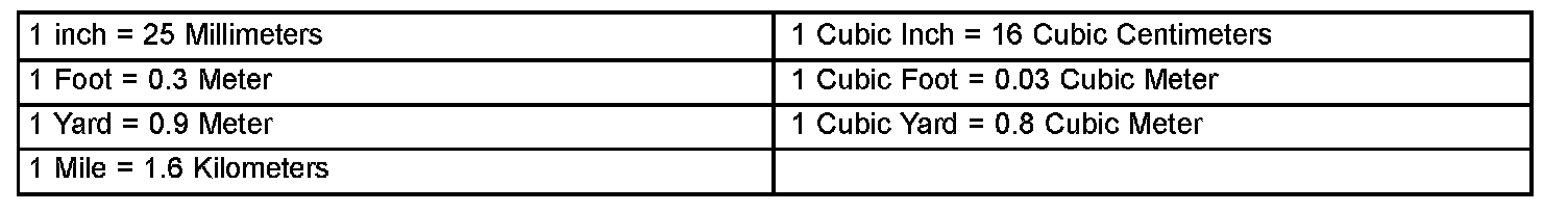 The following chart will assist in converting metric units to equivalent English and SAE units, or vise versa.