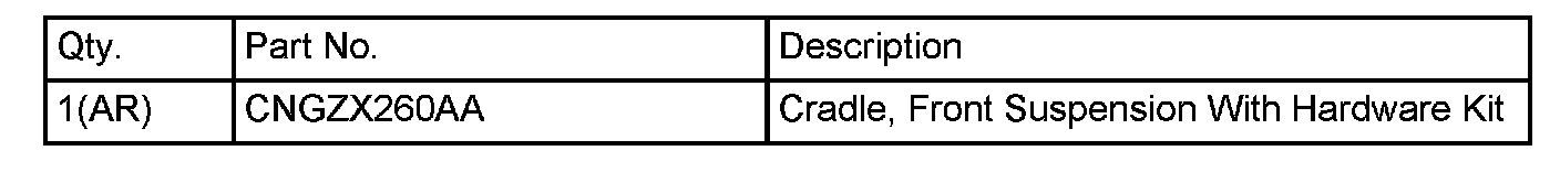3. Remove and Replace Cradle, Front Suspension. Refer to the detailed removal/installation procedures available in DealerCONNECT > TechCONNECT under: Service Info > 13- Frames and Bumpers > Frame > Engine Cradle Crossmember > Removal/Installation > Front Crossmember.