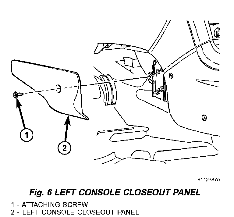 1. Place center console closeout panel into position (Fig. 6) and/or (Fig. 7).