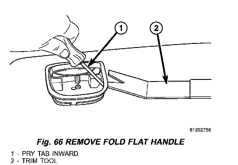 3. Release tab attaching fold flat handle to load floor panel (Fig. 66).