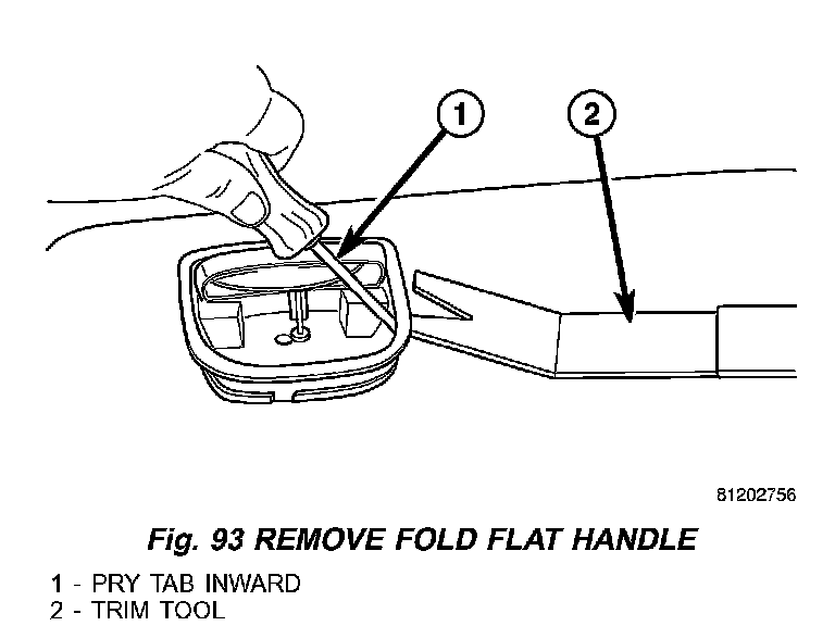 5. Release tab attaching fold flat handle to load floor panel (Fig. 93).