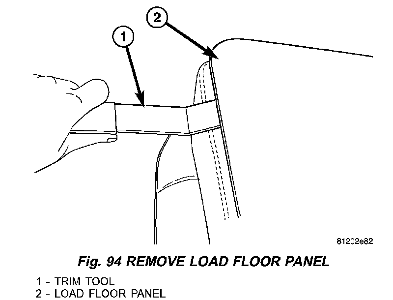 7. Remove load floor panel by using a trim tool and lifting up the edges to disengage the push pins (Fig. 94).