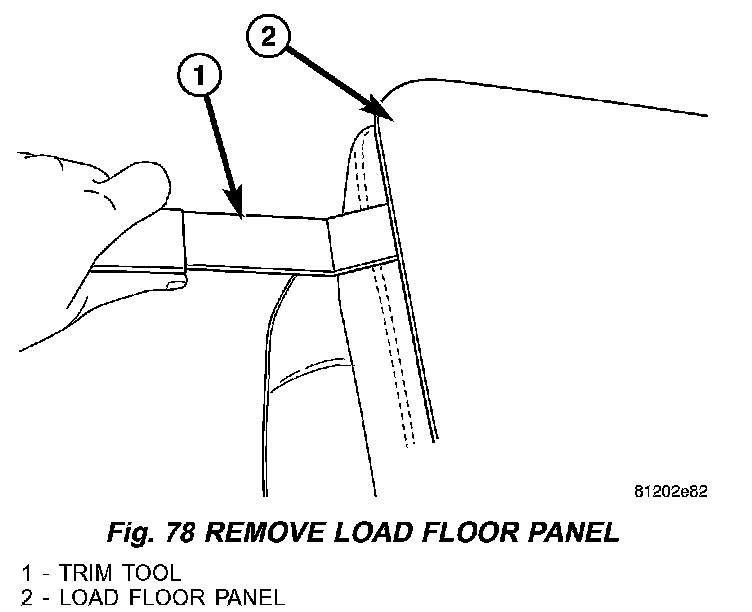 5. Remove load floor panel by using a trim tool and lifting up the edges to disengage the push pins (Fig. 78).
