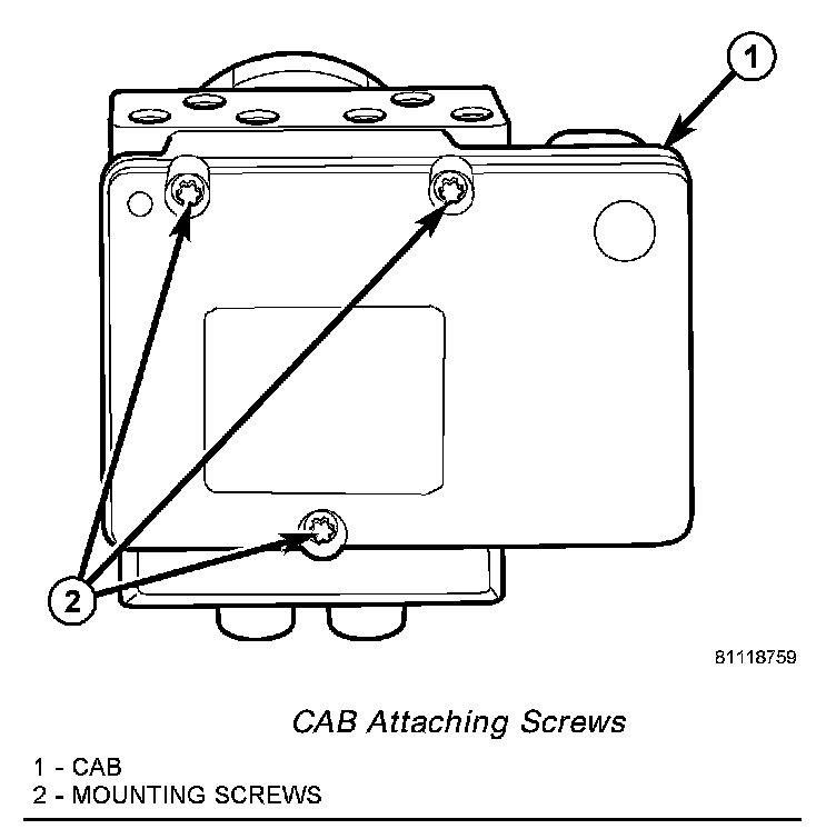 3. Install 3 screws mounting CAB to HCU. Tighten CAB mounting screws to 2 Nm (17 in. lbs.) torque.