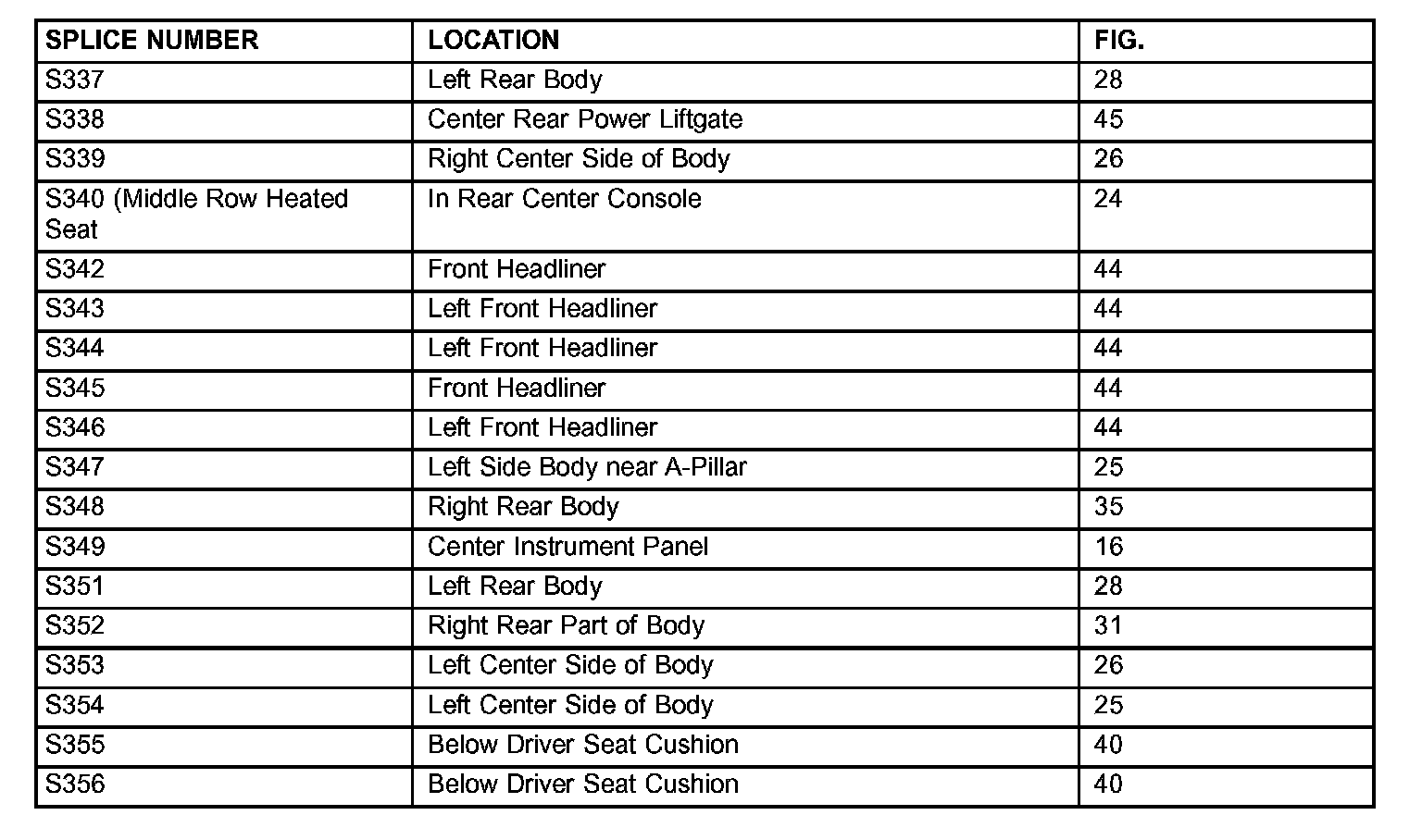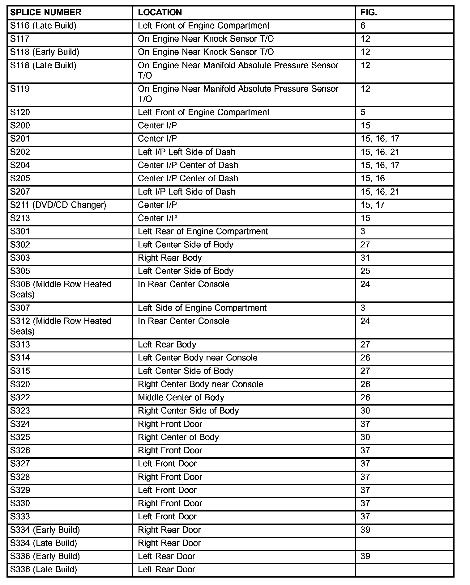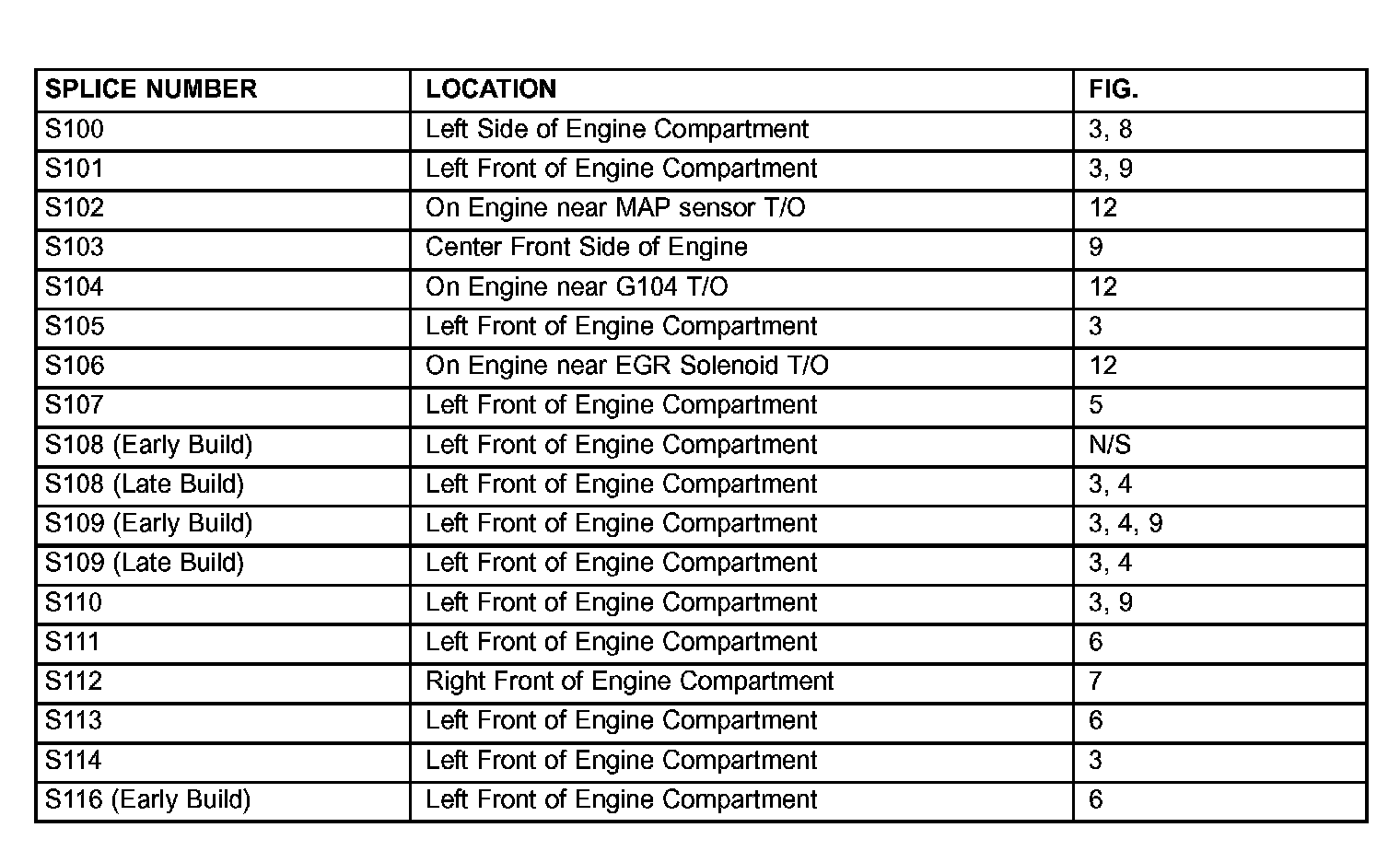 The abbreviation T/O (Take Out) is used in the location column to indicate a point in which the wiring harness branches out to a component.