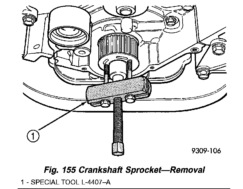 2. Remove crankshaft sprocket using Special Tool L-4407-A (Fig. 155).