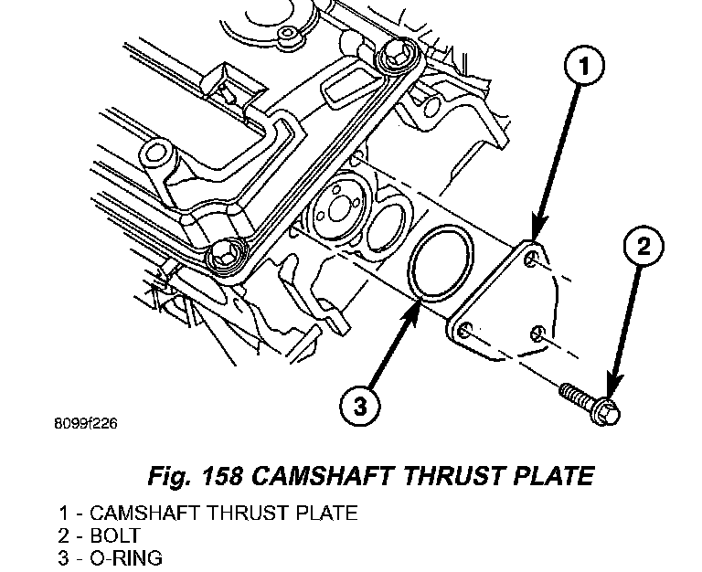 11. Install cam retainer/thrust plates and O-rings (Fig. 158).