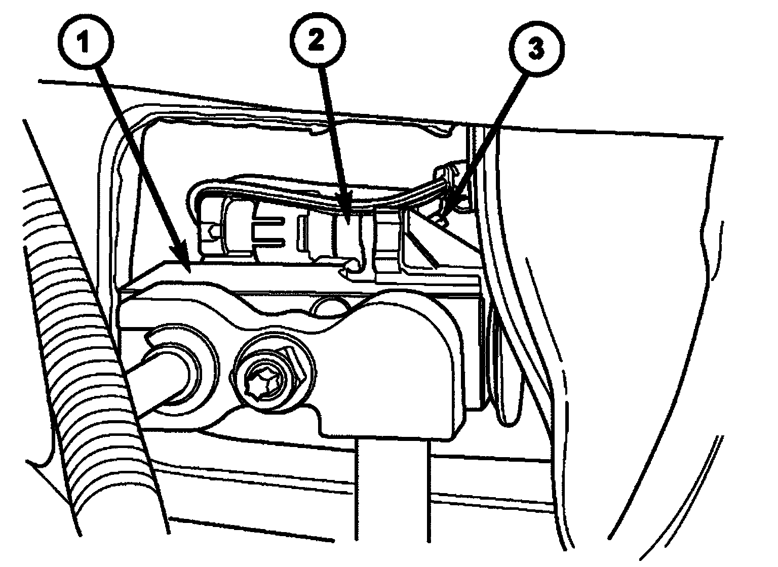 1. Position the evaporator temperature sensor into the right rear corner of the engine compartment.
