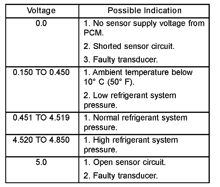 A/C Pressure Transducer Voltage Chart: