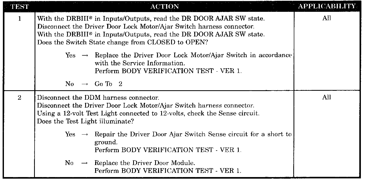 DRIVER DOOR AJAR CIRCUIT SHORT TO GROUND