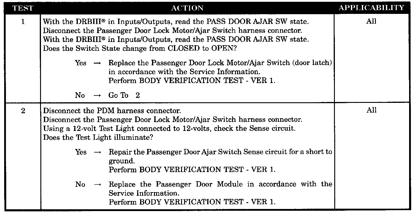 - Passenger door lock motor/ajar switch short to ground