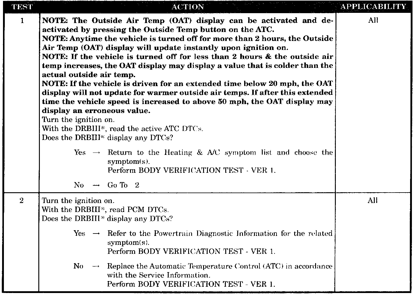 - Automatic temperature control (ATC) DTC(s) present