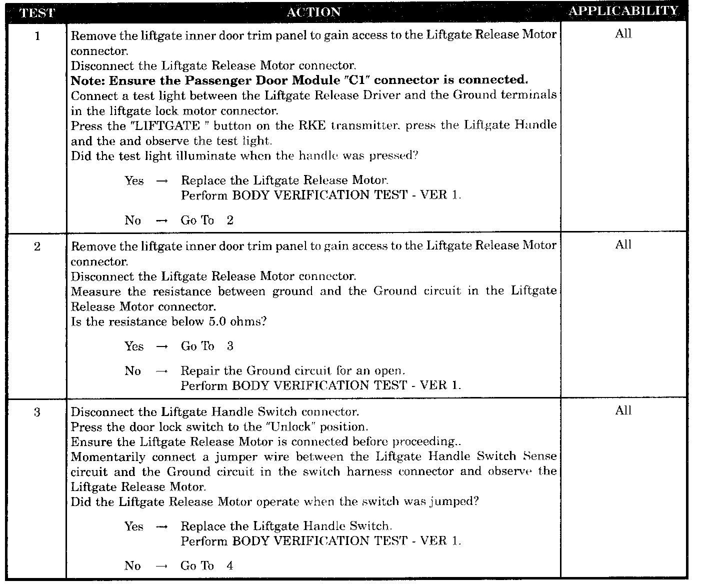 LIFTGATE FAILS TO RELEASE - WITHOUT POWER LIFTGATE