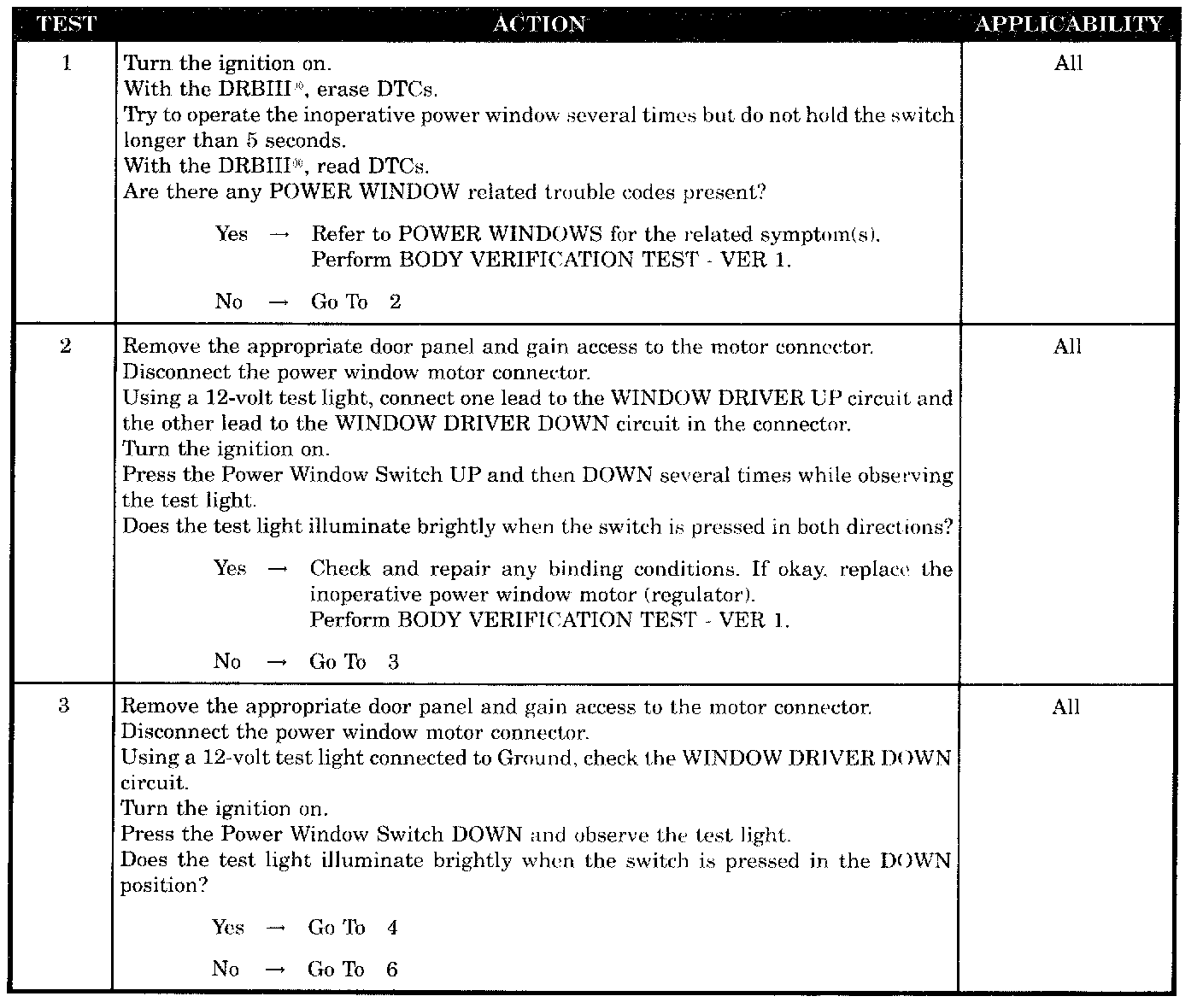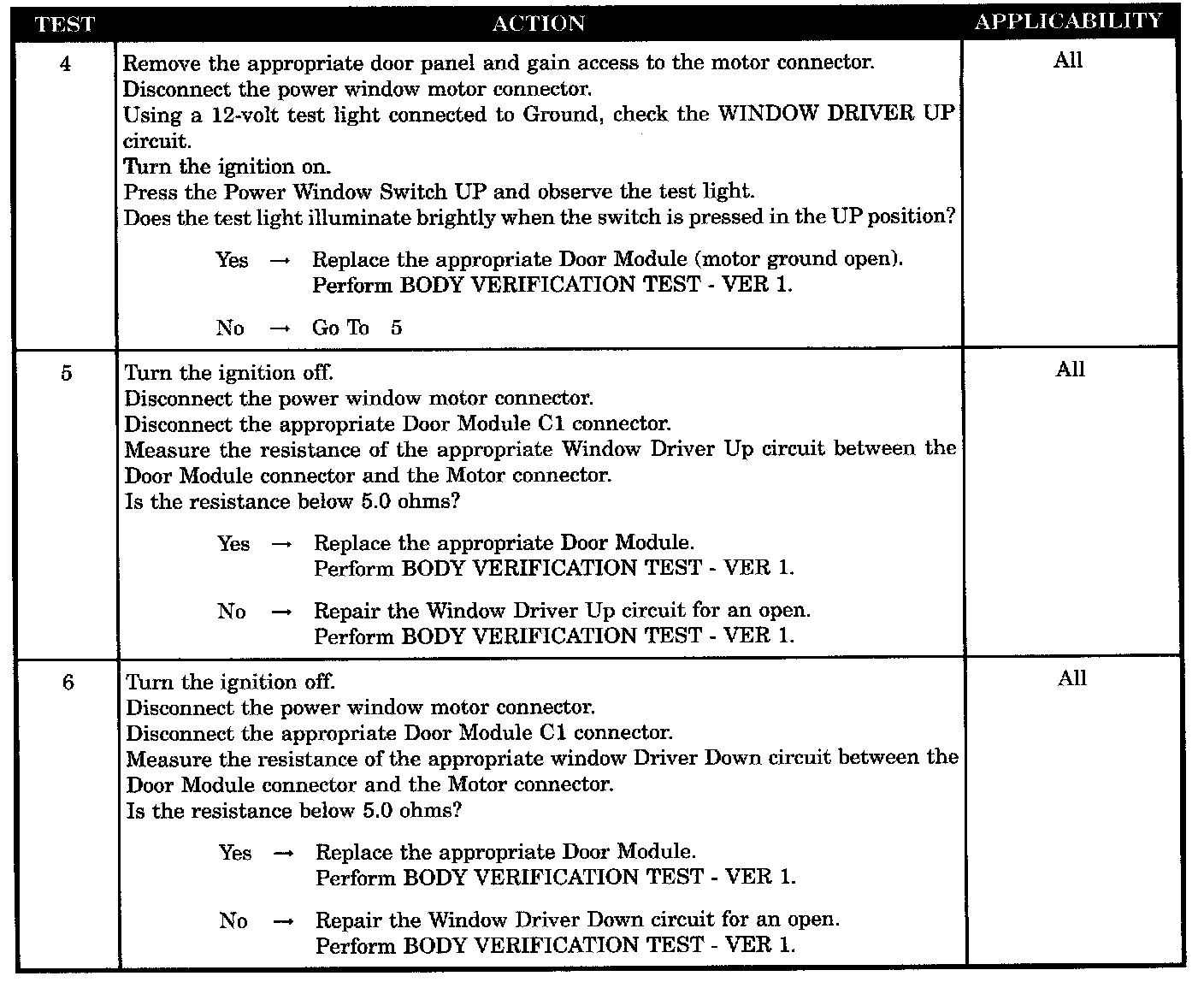 ONE WINDOW MOTOR INOPERATIVE FROM ANY SWITCH