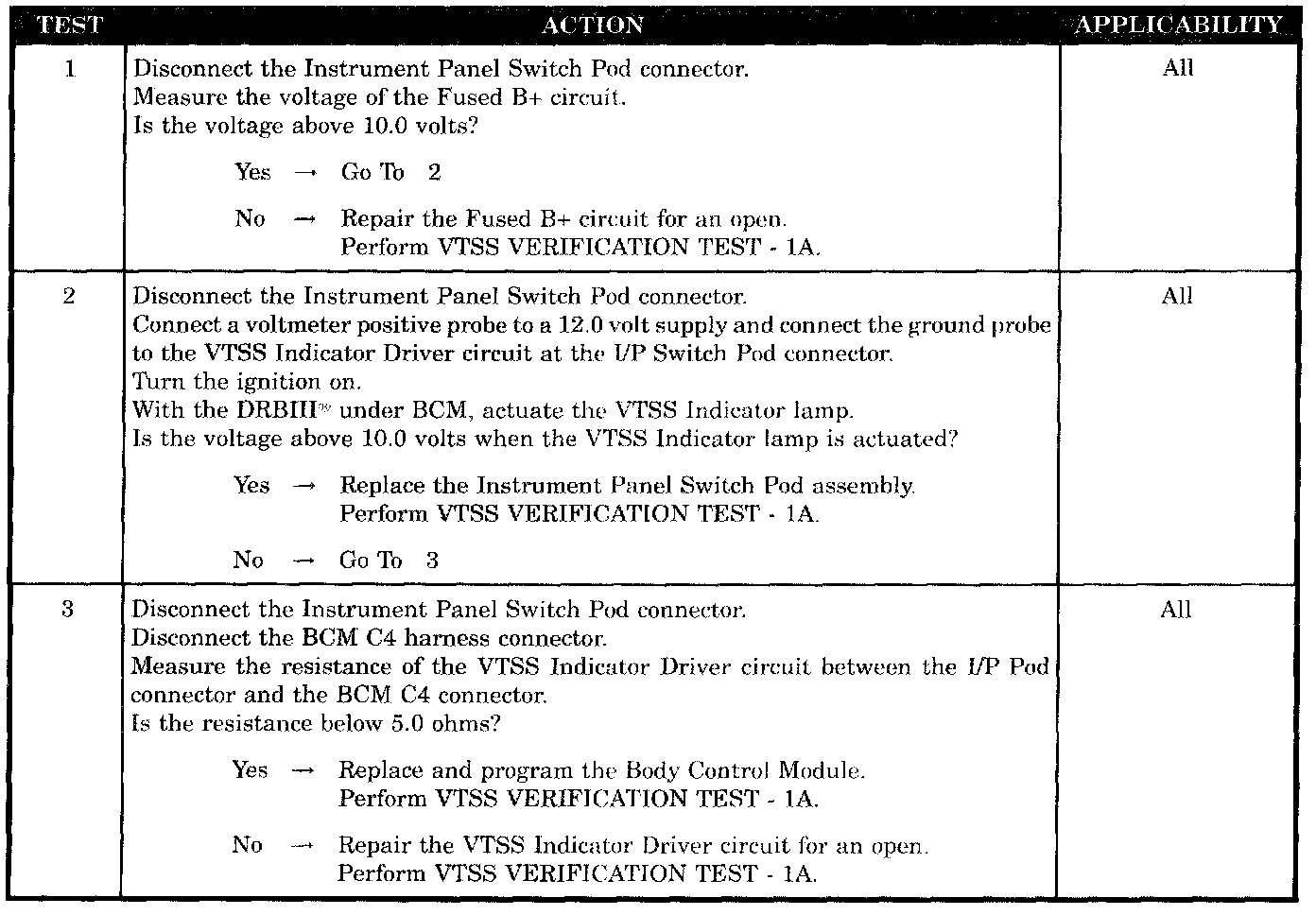 VTSS INDICATOR INOPERATIVE