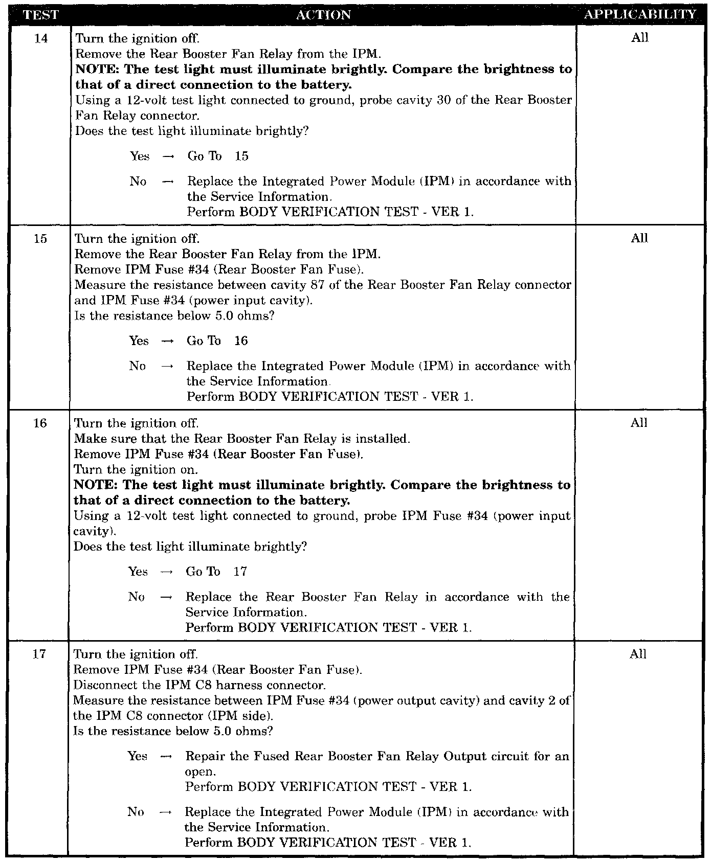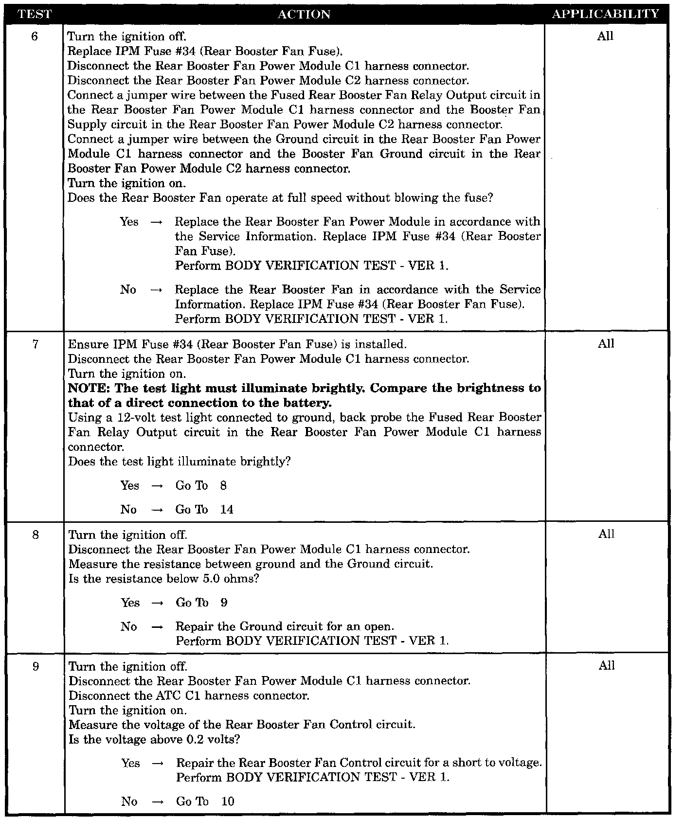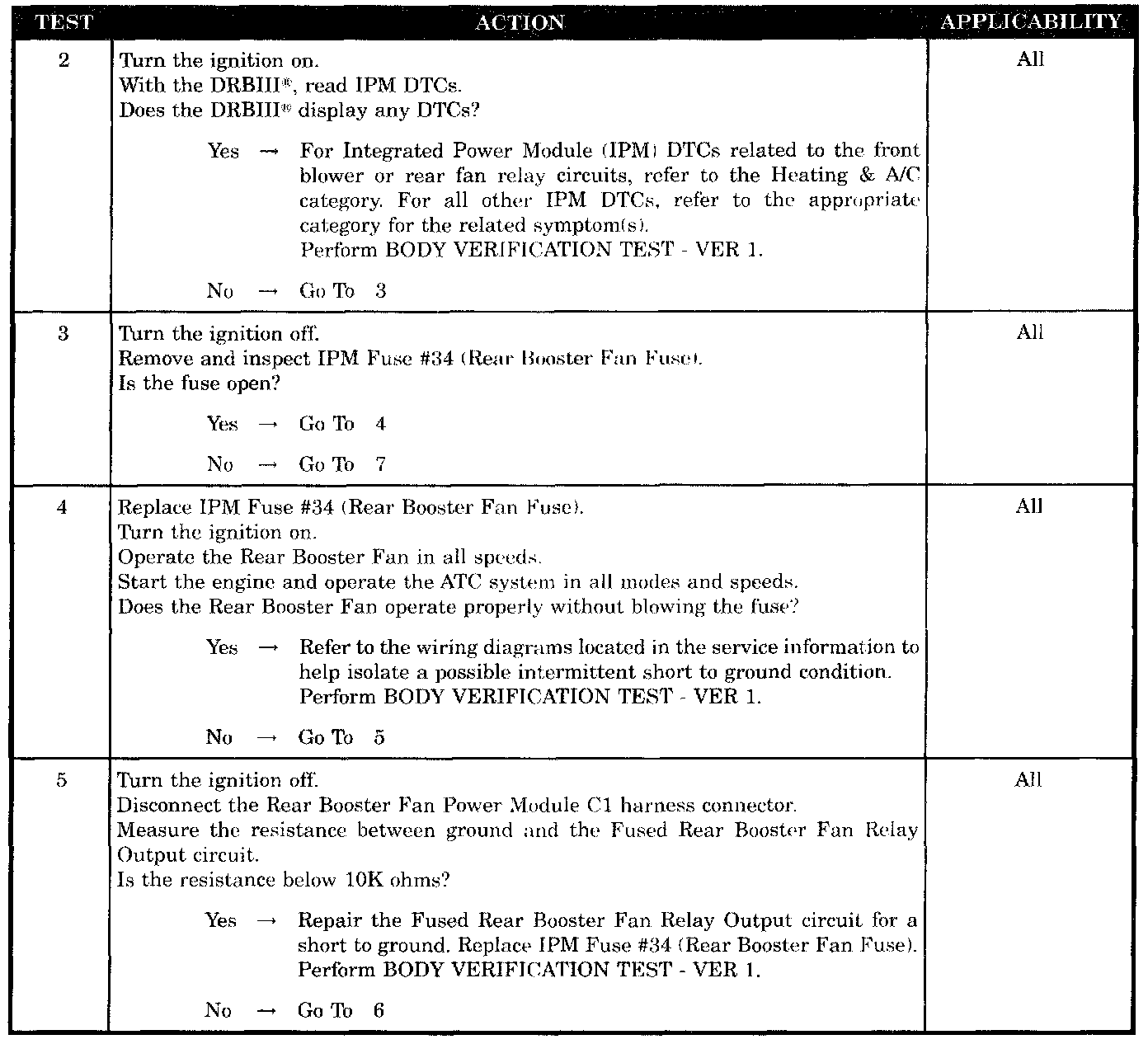 - Fused rear booster fan relay output circuit shorted to ground