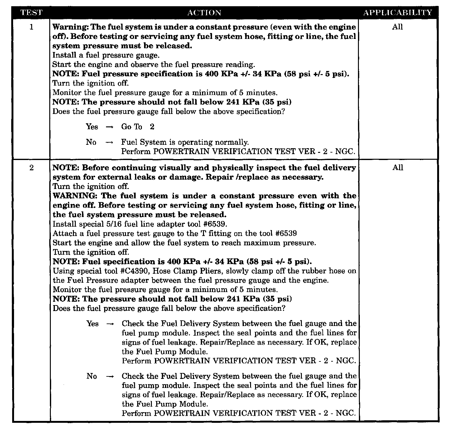Checking Fuel Pressure Leak Down