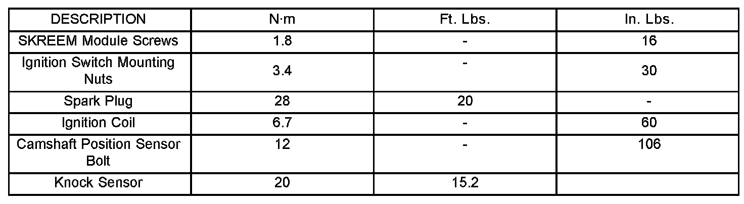 Torque Specifications: