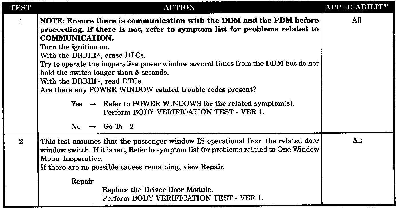ANY PASSENGER WINDOW INOPERATIVE FROM DDM