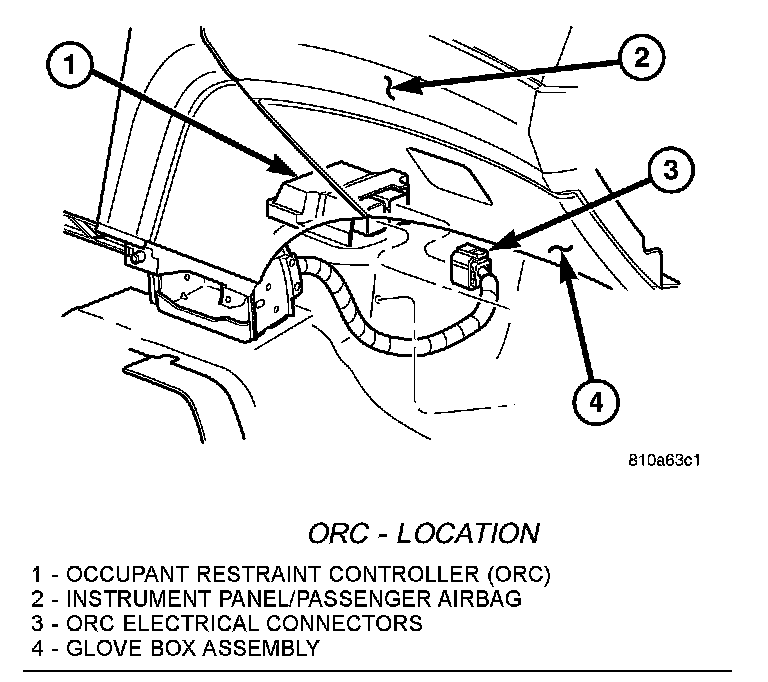 The microprocessor in the Occupant Restraint Controller (ORC) contains the supplemental restraint system logic circuits and controls all of the supplemental restraint system components. The ORC uses On-Board Diagnostics (OBD) and can communicate with other electronic modules in the vehicle as well as with the DRBIII(R) scan tool using the Programmable Communications Interface (PCI) data bus network. This method of communication is used for control of the airbag indicator in the Instrument Cluster and for supplemental restraint system diagnosis and testing through the 16-way data link connector located on the driver side lower edge of the instrument panel.