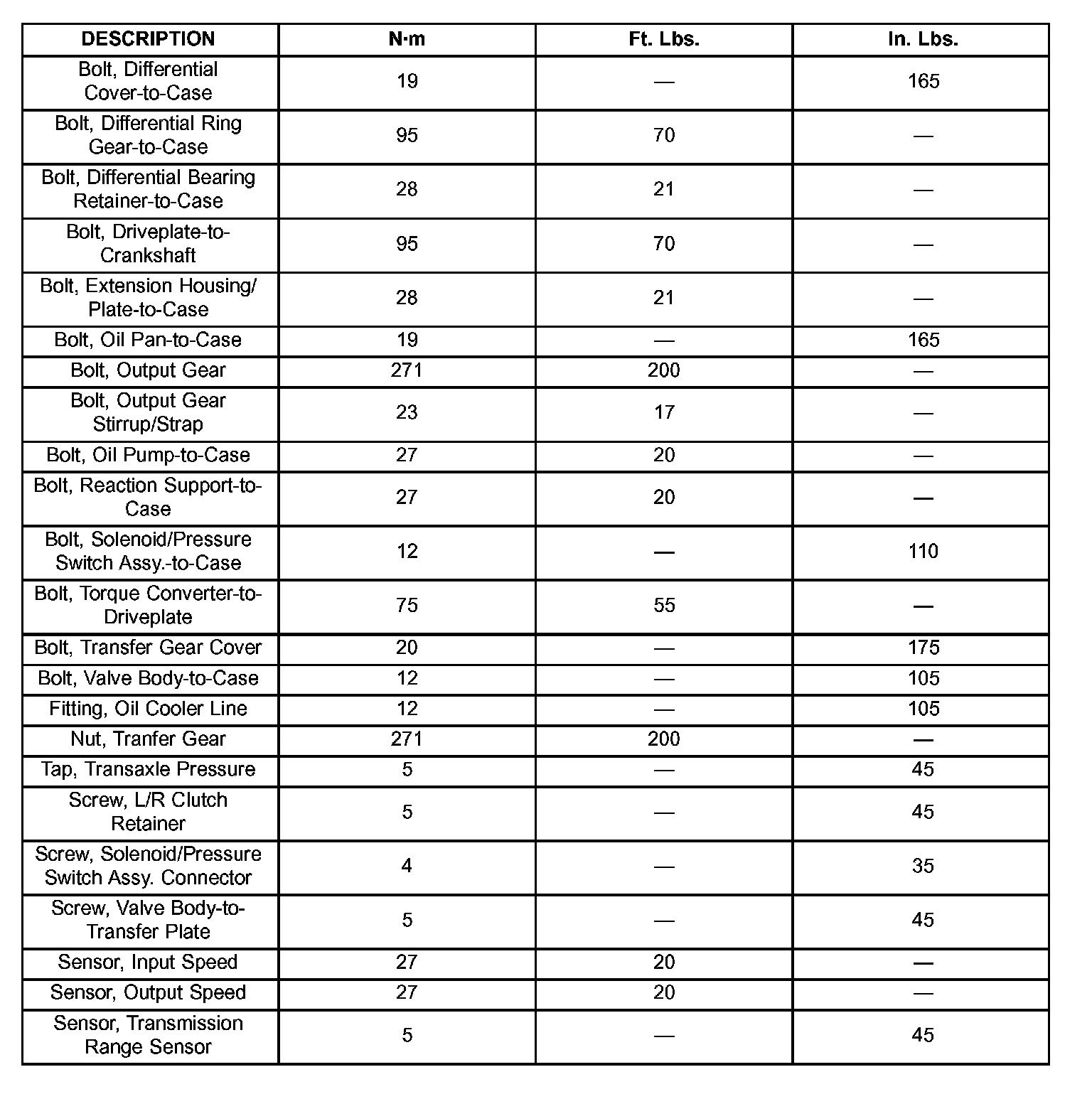 Torque Specifications Chart
