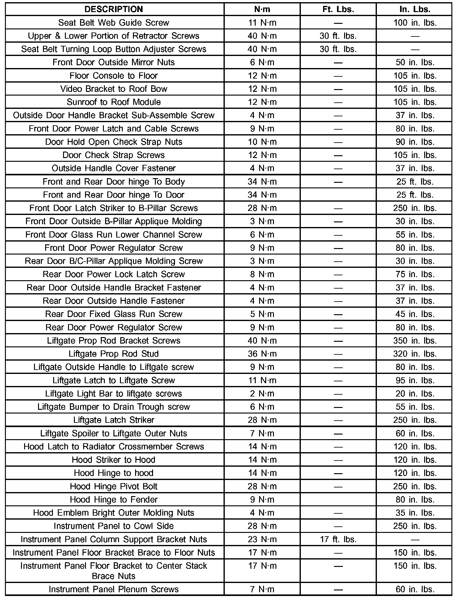 Specifications Tightening (Part 1):