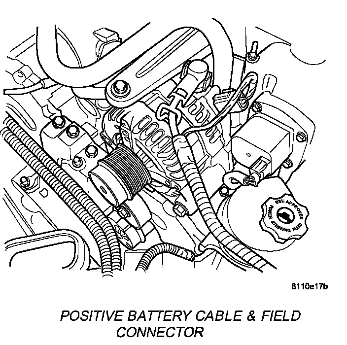5. Disconnect the generator field circuit wiring connector. Push the RED locking tab to release.