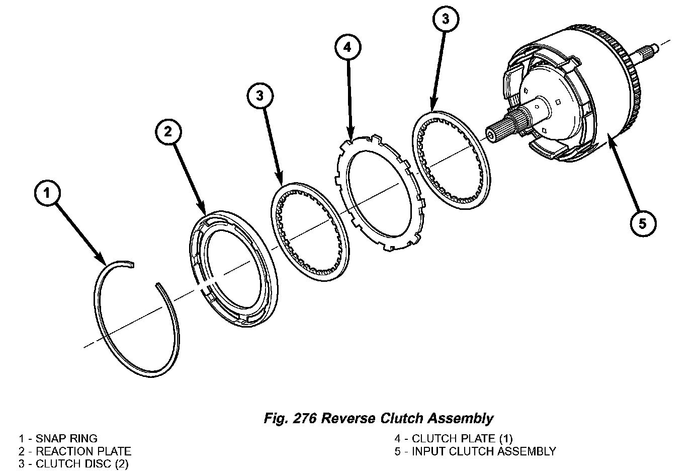 5. Remove reverse clutch pack (Fig. 276). Tag components for assembly identification.