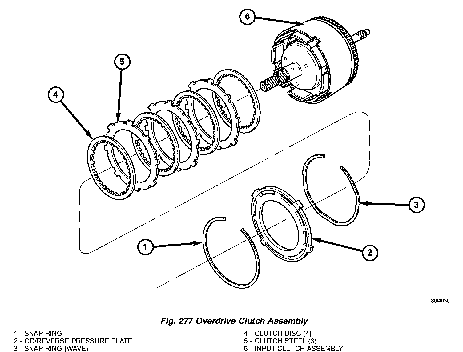 10. Remove and inspect OD and UD Shafts, as well as #3 thrust washer and plate, and #2 needle bearing (Fig. 278).