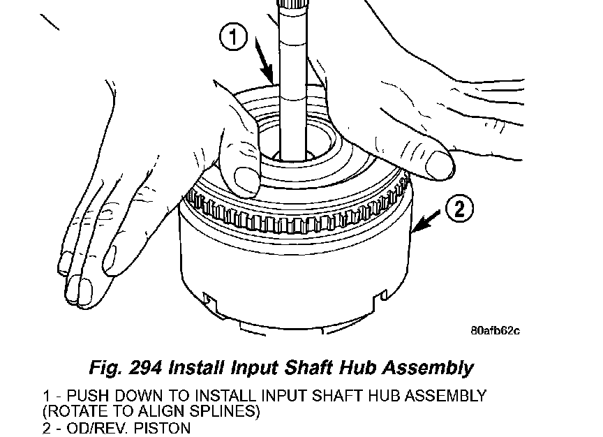 5. Install the input hub/shaft assy. to the OD/Reverse piston/clutch retainer assy. (Fig. 294).
