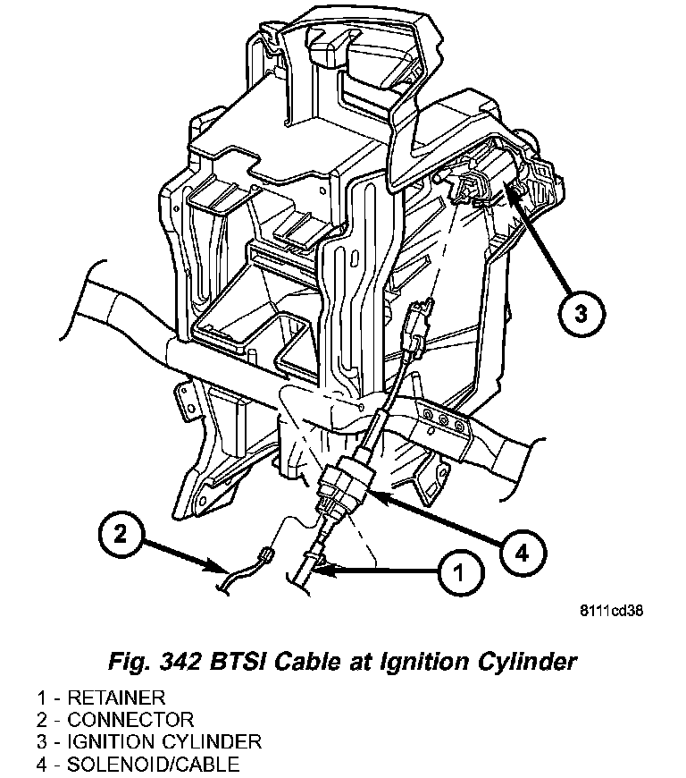 6. Disconnect shift interlock cable from ignition cylinder (Fig. 342).
