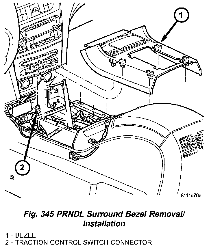 9. Remove PRNDL surround bezel (Fig. 345).