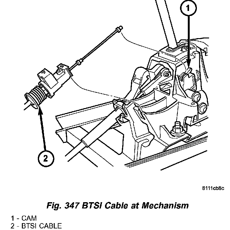 11. Disconnect shift interlock cable from shift mechanism as shown in (Fig. 347).