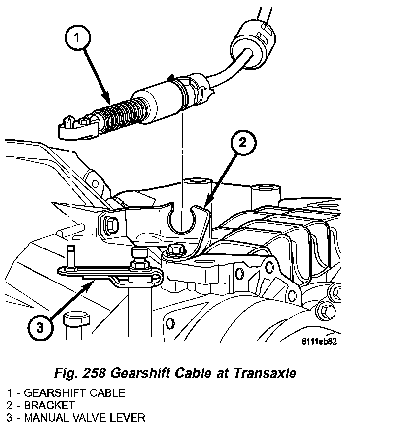 3. Disconnect gearshift cable from transaxle manual valve lever (Fig. 258).