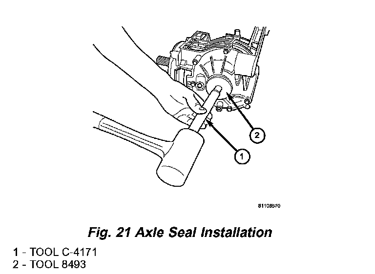 1. Install axle seals using tools C4171 and 8493 (Fig. 21).