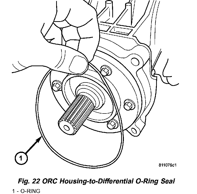 2. Install large overrunning clutch housing O-ring to differential assembly (Fig. 22). Lube O-ring with ATF.