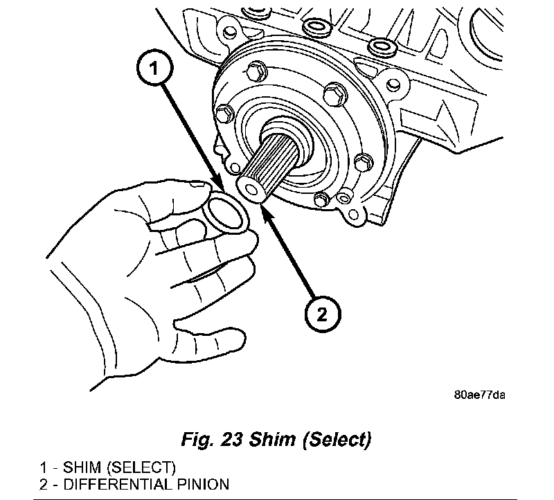 3. Install shim to differential pinion shaft (Fig. 23). Be sure to use shim of same thickness as removed.