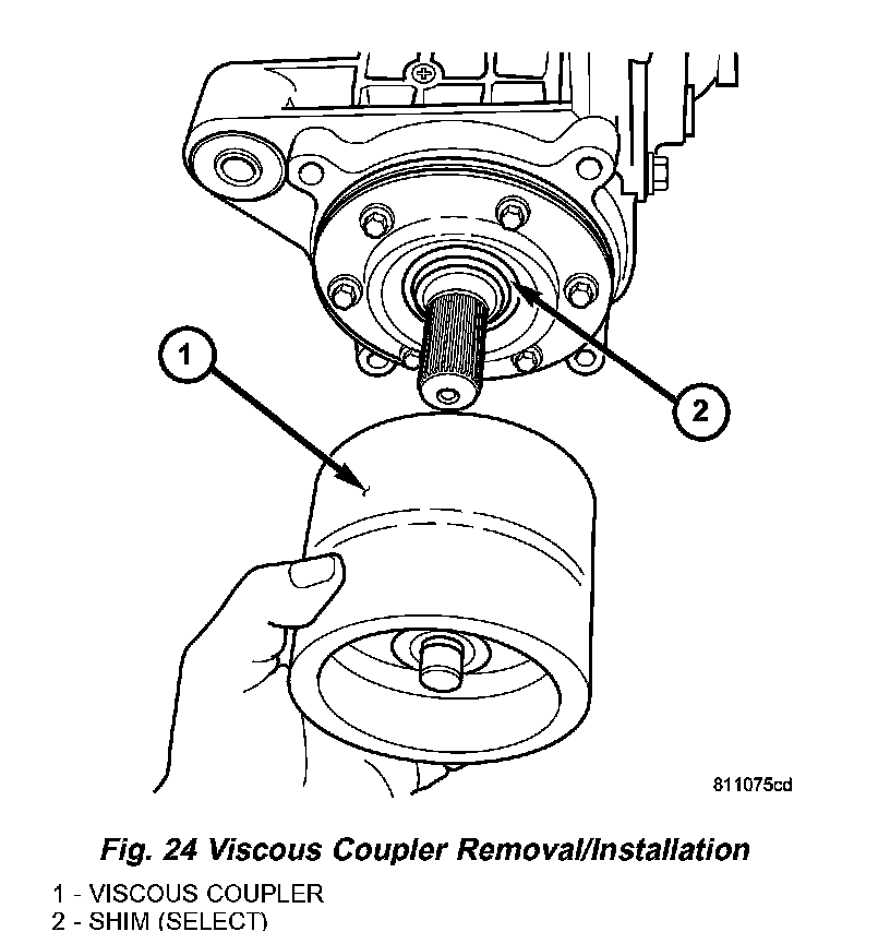 4. Install viscous coupler to differential pinion shaft (Fig. 24).