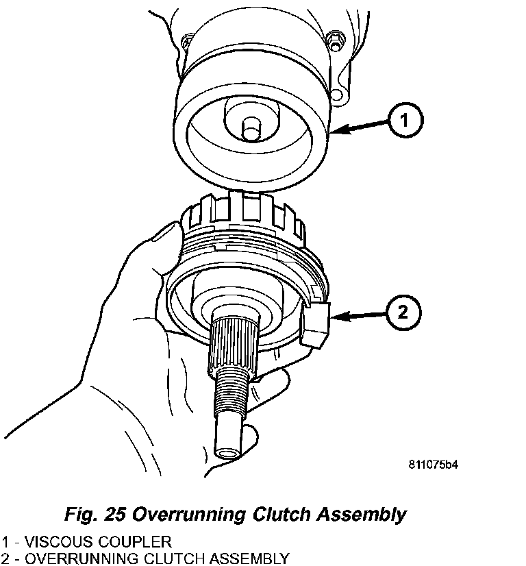 5. Install overrunning clutch assembly to viscous coupler (Fig. 25).