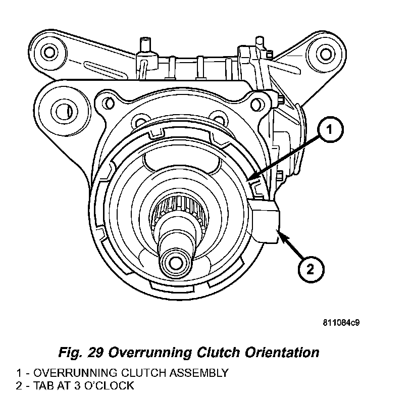 8. Align overrunning clutch ground tab to 3 o'clock position (Fig. 29).